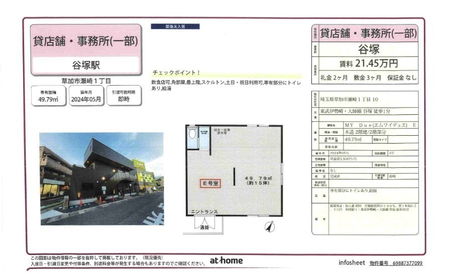 東武伊勢崎・大師線 谷塚駅 徒歩 1分 東武伊勢崎・大師線 谷塚駅 徒歩 1分 東武伊勢崎・大師線 谷塚駅 徒歩 1分